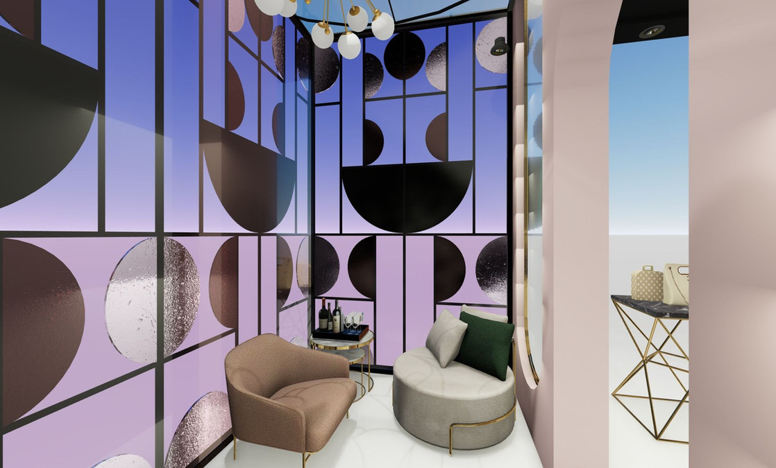 Se propuso una tienda stand off, de la marca Chanel con el punto de sobresaltar lo que caracteriza la historia y oren de Chanel.